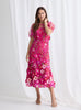 A gorgeous midi dress by Trellis Lane. Crafted in a 3D floral fabric with stunning puff sleeves and a high...