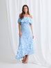 A gorgeous maxi dress by Trellis Lane. Crafted in a 3D floral fabric with off shoulder sleeves and asymmetric hem....